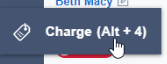 For field descriptions, refer to the context-sensitive help on this page: Ticket page > Quick Action bar > Charge (Alt + 4).