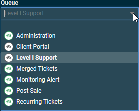 Queues are like folders for tickets. For your tickets, Level I Support is the default queue, and tickets in this and the Client Portal queue can be viewed by your customers, while all others cannot.