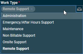 The work type describes the nature of the work and is very important for billing. It will modify the role rate of the technician. The settings in your Autotask instance are as follows: