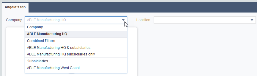 If an organization has multiple locations, a location filter will be displayed, and parent organization contacts can optionally filter widget data by location.